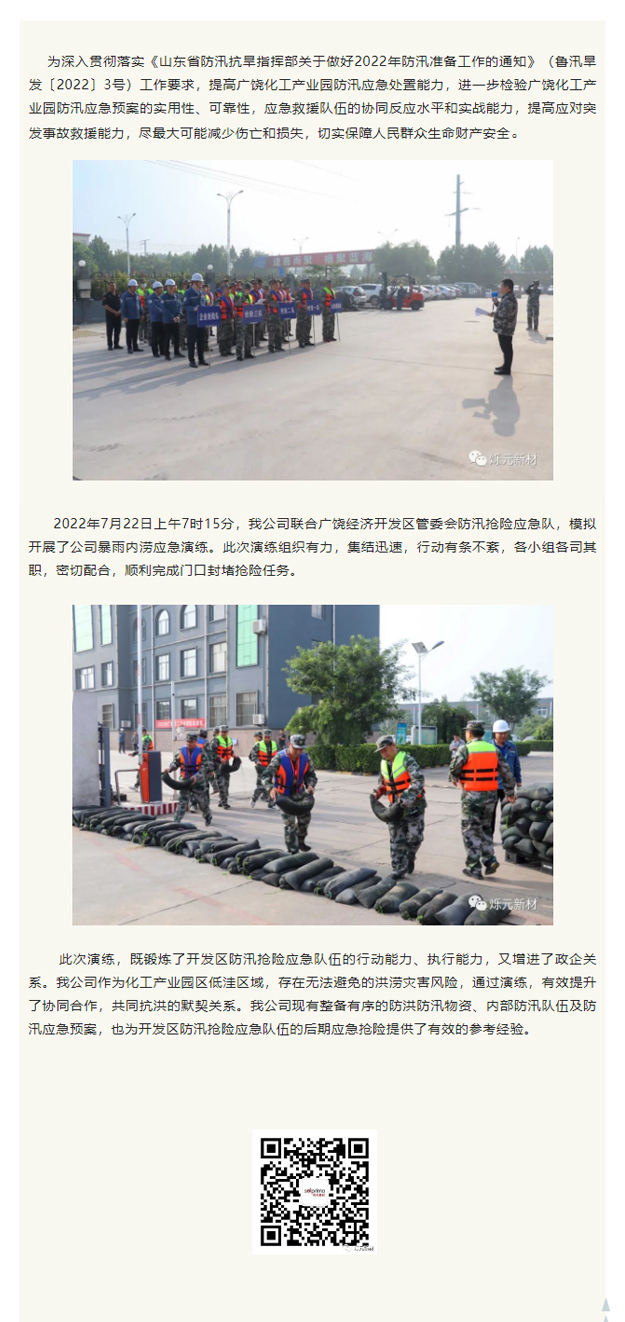 我(wo)公司與廣饒(ráo)化工産業園(yuán)組織聯合防(fáng)汛應急演♊練(liàn)