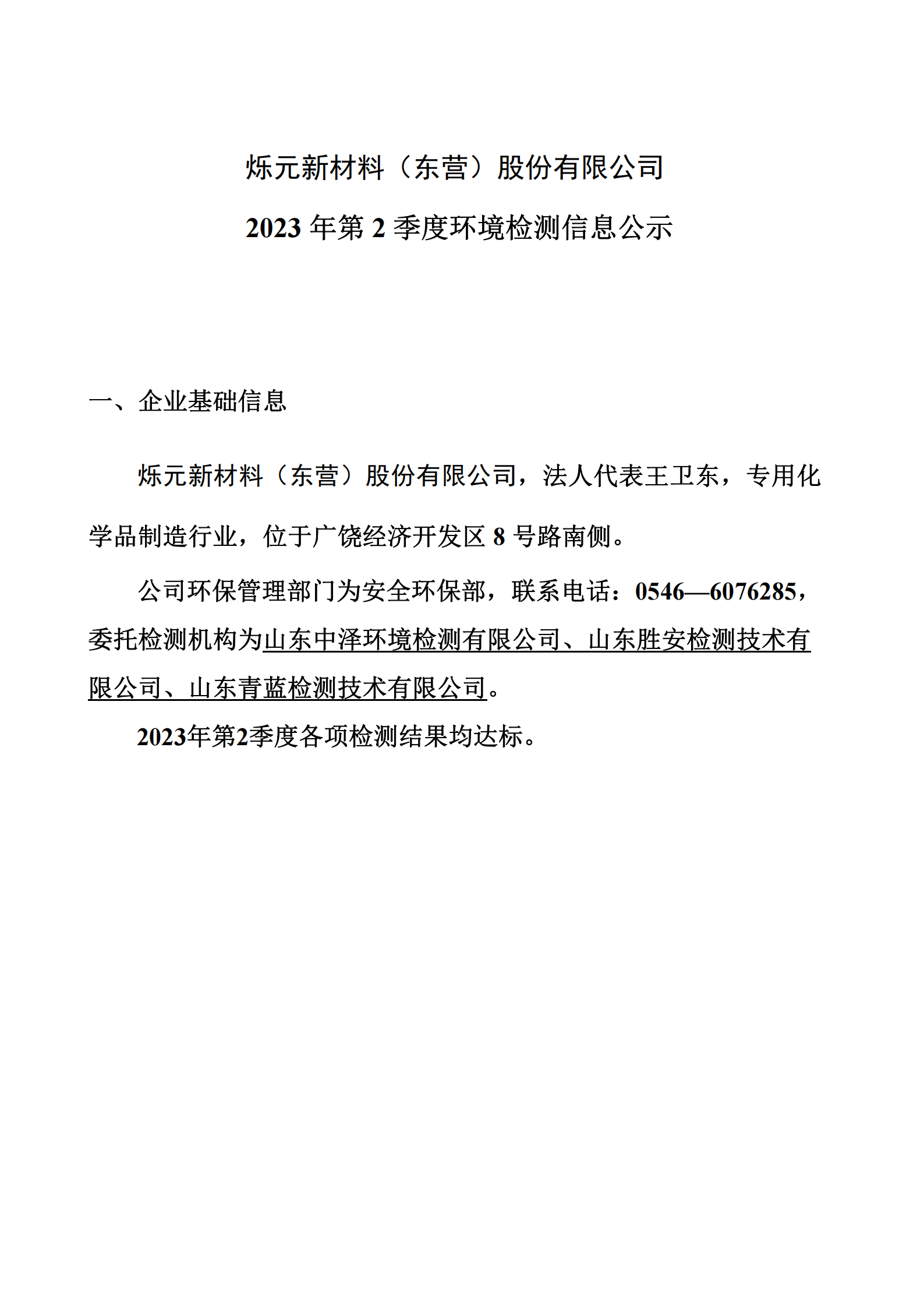 2023年第(di)2季度環境(jìng)檢測信息(xī)公示