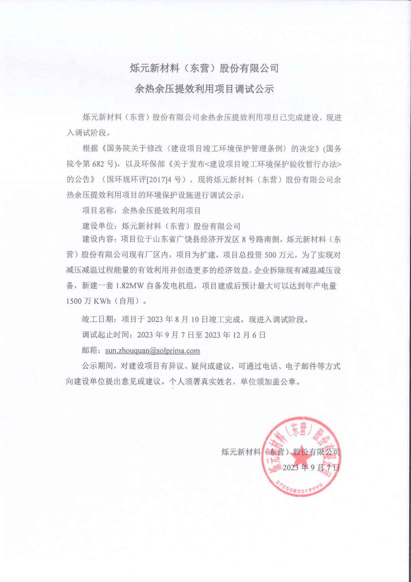 石(shi)家庄义浩机(jī)械制造有限(xiàn)公司(WAP站)餘熱(rè)餘壓提效利(li)用項目調試(shì)公示
