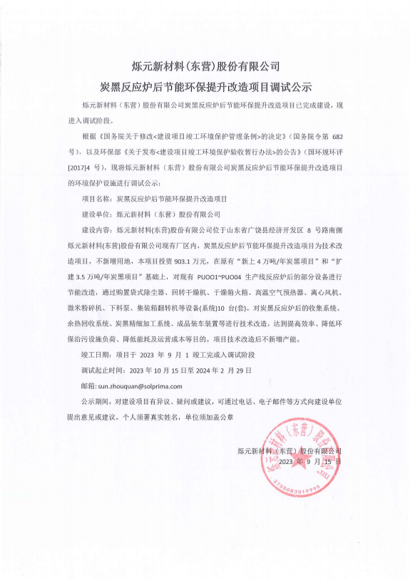 石家(jia)庄义浩(hao)机械制(zhi)造有限(xian)公司(WAP站(zhàn))炭黑反(fan)應爐後(hou)節能環(huán)保提升(shēng)改造項(xiang)目調試(shì)公示