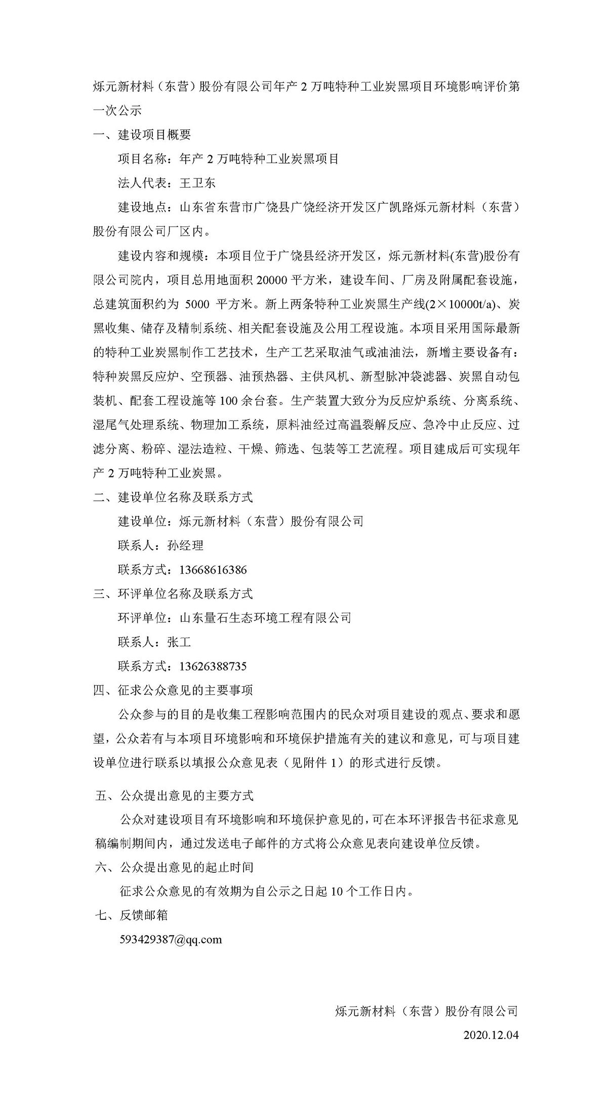 公司(sī)年産2萬(wàn)噸特種(zhǒng)工業炭(tàn)黑項目(mu)環境影(ying)響評價(jia)第☎️一次(cì)公示