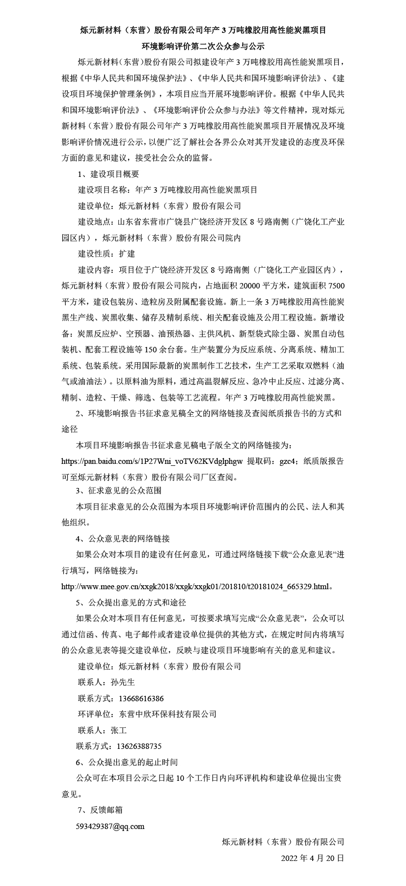 年産(chan)3萬噸橡(xiang)膠用高(gāo)性能炭(tàn)黑項目(mù)環境影(ying)響評價(jia)第二次(ci)公示