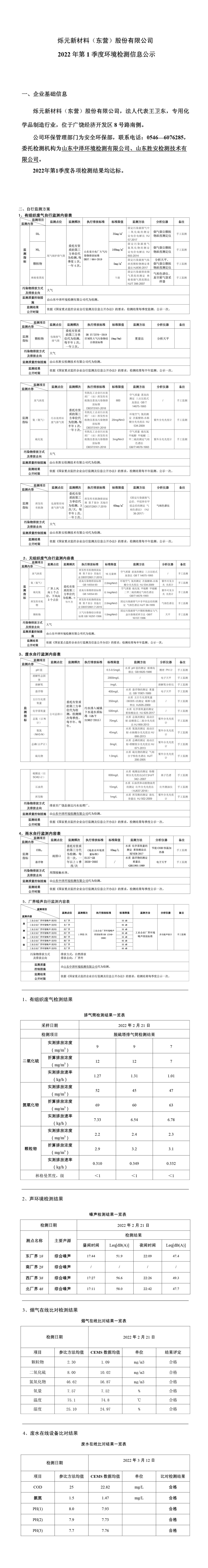2022年第(dì)1季度環(huán)境檢測(cè)信息公(gōng)示